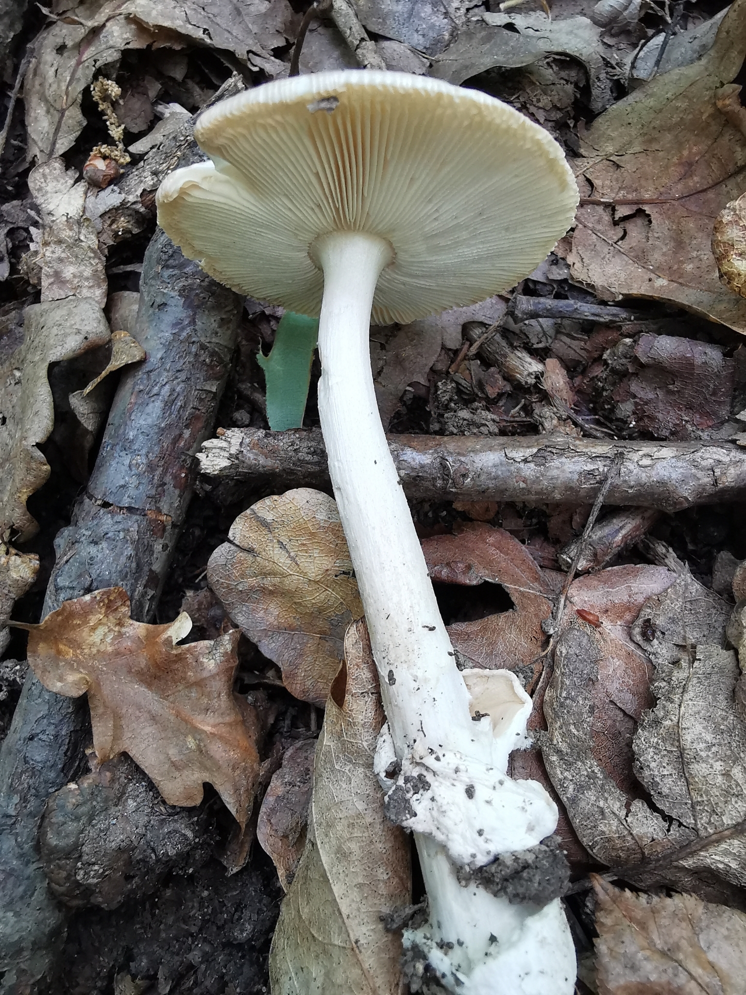 - Rasgos clave: sombrero estriado, láminas blancas, volva saciforme o envolvente, esporada blanca.