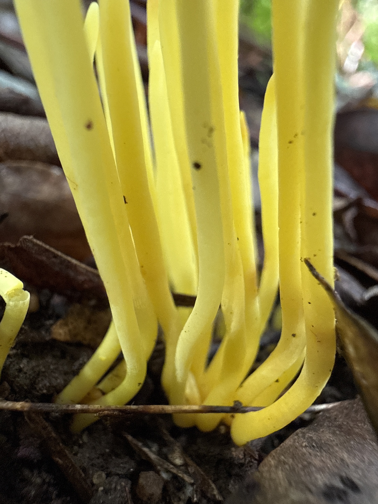 Clavulinopsis fusiformis es una pequeña seta clavarioide de la familia Clavariaceae, orden Agaricales, muy llamativa por sus fructificaciones amarillas, alargadas y agrupadas en ramilletes densos. A diferencia de las setas con sombrero y láminas, presenta cuerpos fructíferos simples, estrechos, verticales y con forma de huso o pequeña maza, de ahí su epíteto específico.