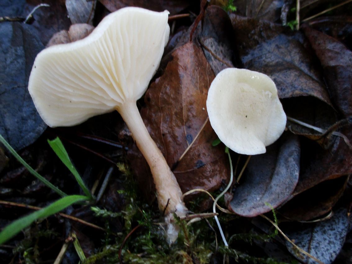 - Buscar ejemplares blanquecinos con láminas claramente decurrentes en suelos con hojarasca.