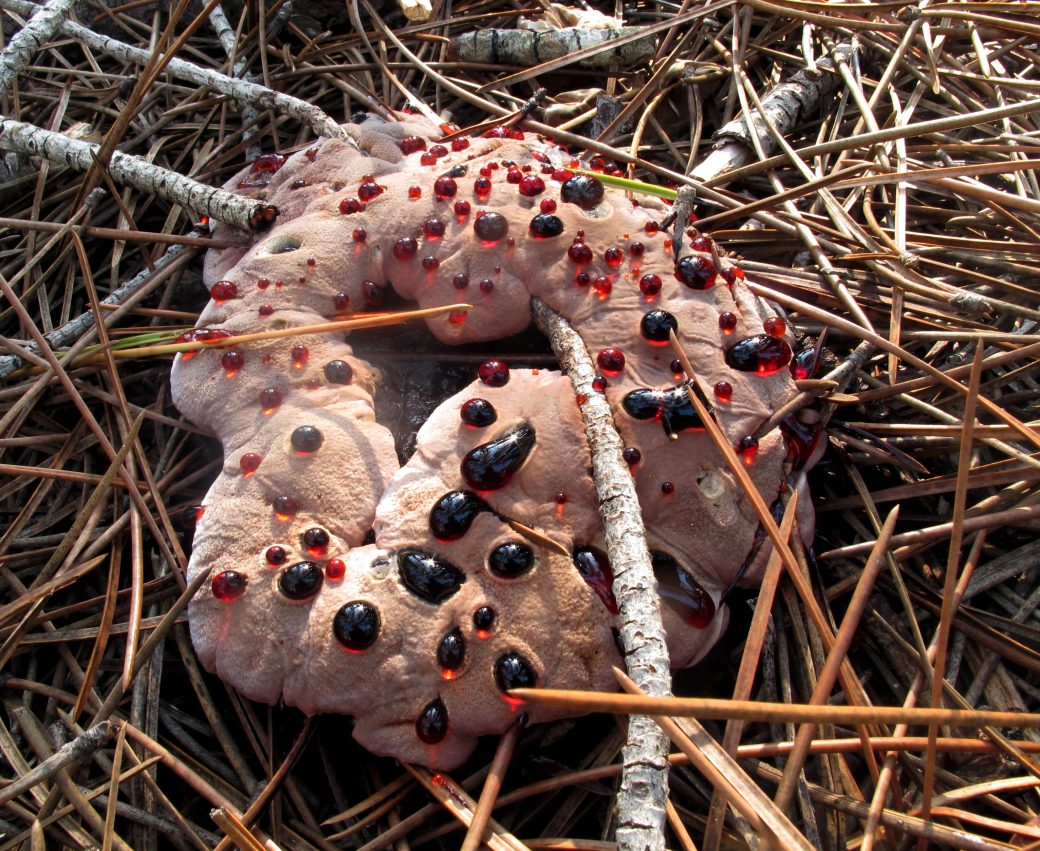 Los hongos de dientes como Hydnellum ferrugineum han sido estudiados como indicadores de continuidad forestal, ya que algunas especies disminuyen con la alteración del suelo y la intensificación silvícola. Las exudaciones rojizas en ejemplares jóvenes han generado comparaciones populares con lágrimas o sangre, un rasgo llamativo también presente en otros hidnoides.