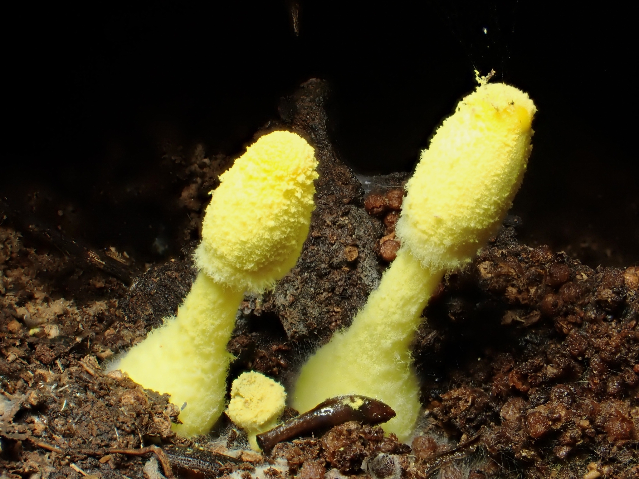 Hábitat: Saprotrofa en sustratos de macetas, compost, mantillo y ambientes de invernadero; frecuente en interiores con alta humedad y calor, tambien en jardines calidos sobre suelos muy organicos.