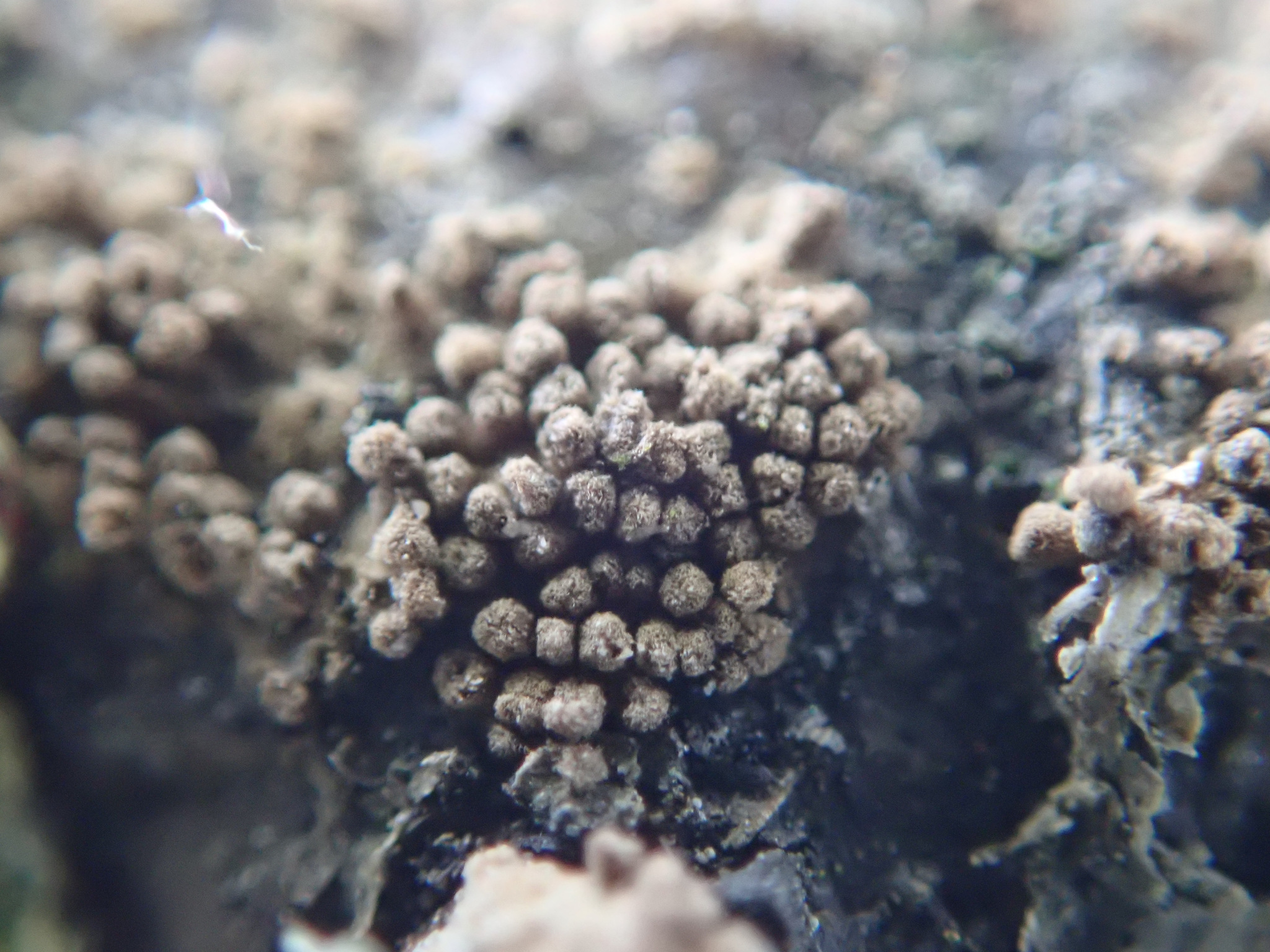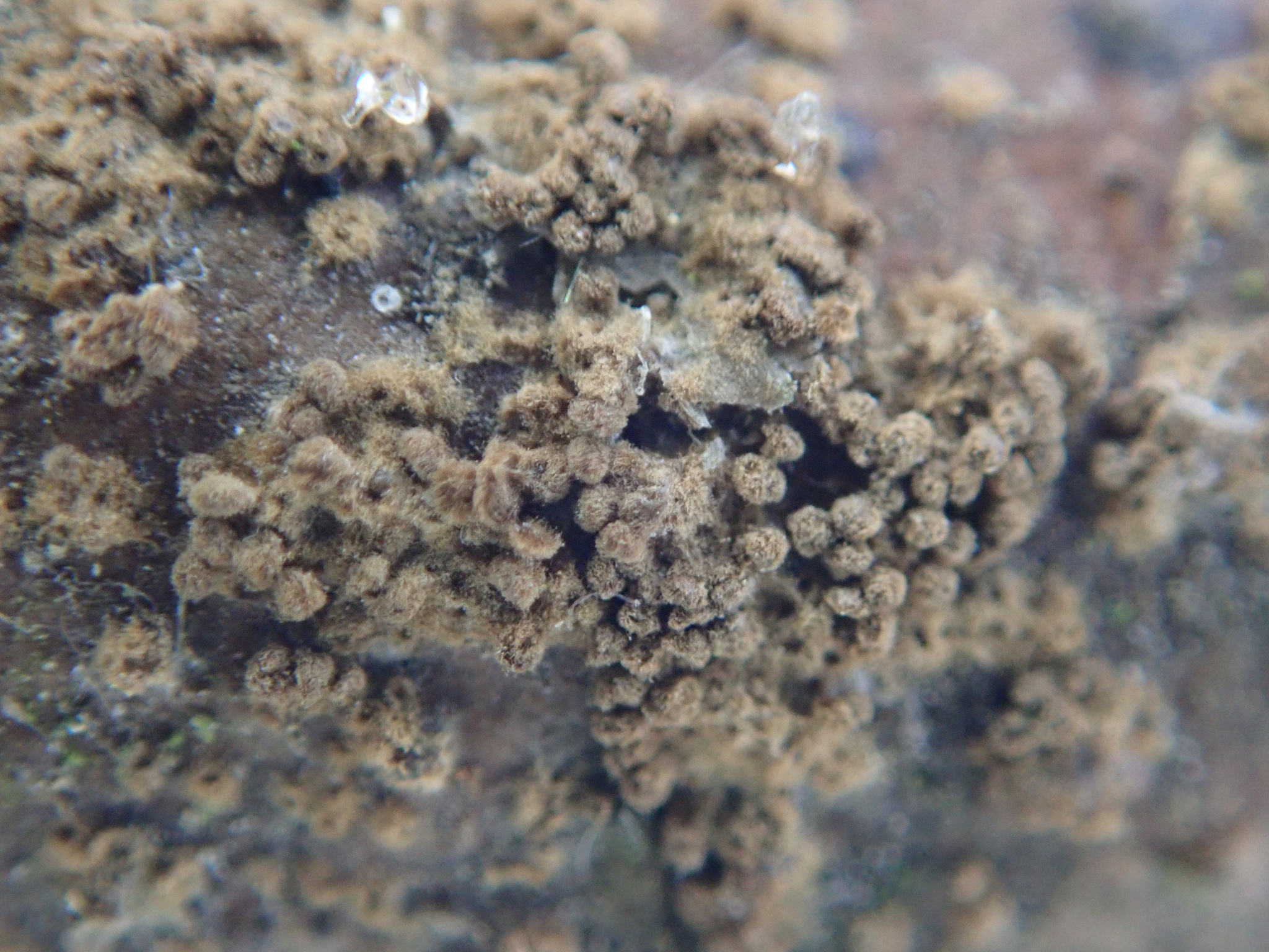 Descripción: Fructificaciones cypheloides muy pequeñas, normalmente de 0,5-3 mm, dispuestas en fasciculos o pequeños grupos densos. Receptaculo cupuliforme a tubular, a veces ligeramente aplanado, con margen entero o finamente denticulado; superficie externa blanquecina a crema, a menudo tomentosa o con vellosidad fina; interior liso a finamente pruinoso, donde se dispone el himenio. No presenta sombrero, laminas ni poros como los agaricos tipicos; no hay pie diferenciado o es muy corto y apenas perceptible. Carne casi inexistente, textura delicada. Esporada blanca. Basidios generalmente tetraspóricos; esporas hialinas, lisas, elipsoidales a subcilindricas. La determinacion fiable puede requerir microscopía por la similitud con otras cyphelloides.
