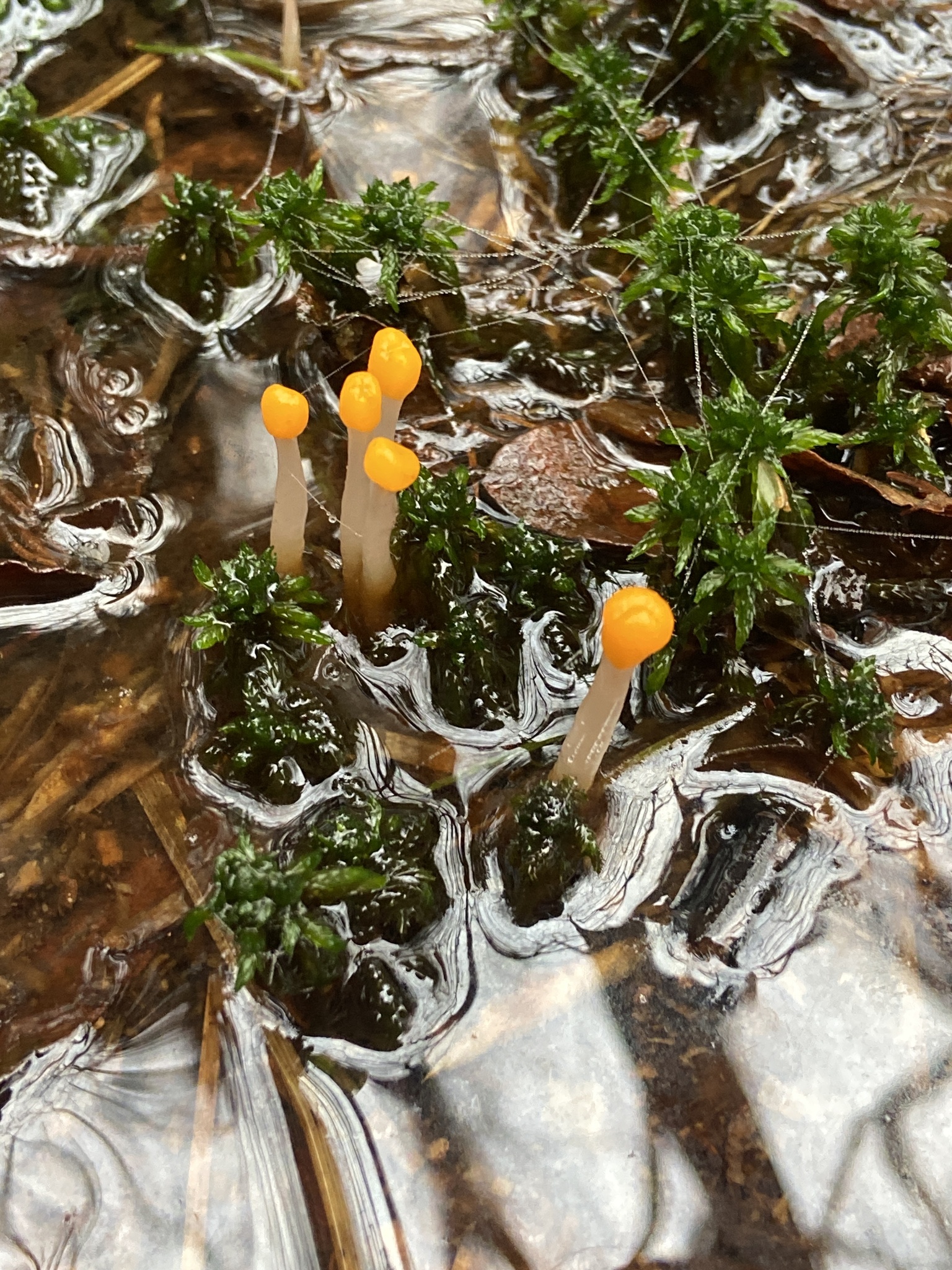 Mitrula paludosa es un ascomiceto de la clase Leotiomycetes (orden Helotiales), tipico de medios encharcados, turberas y arroyos limpios. Forma pequenas fructificaciones con cabeza claviforme o mitriforme de color amarillo a anaranjado, sostenida por un pie esbelto, a menudo emergiendo entre musgos de Sphagnum o desde restos vegetales sumergidos. Es una especie saprobia asociada a material organico en descomposicion en agua fria y bien oxigenada.
