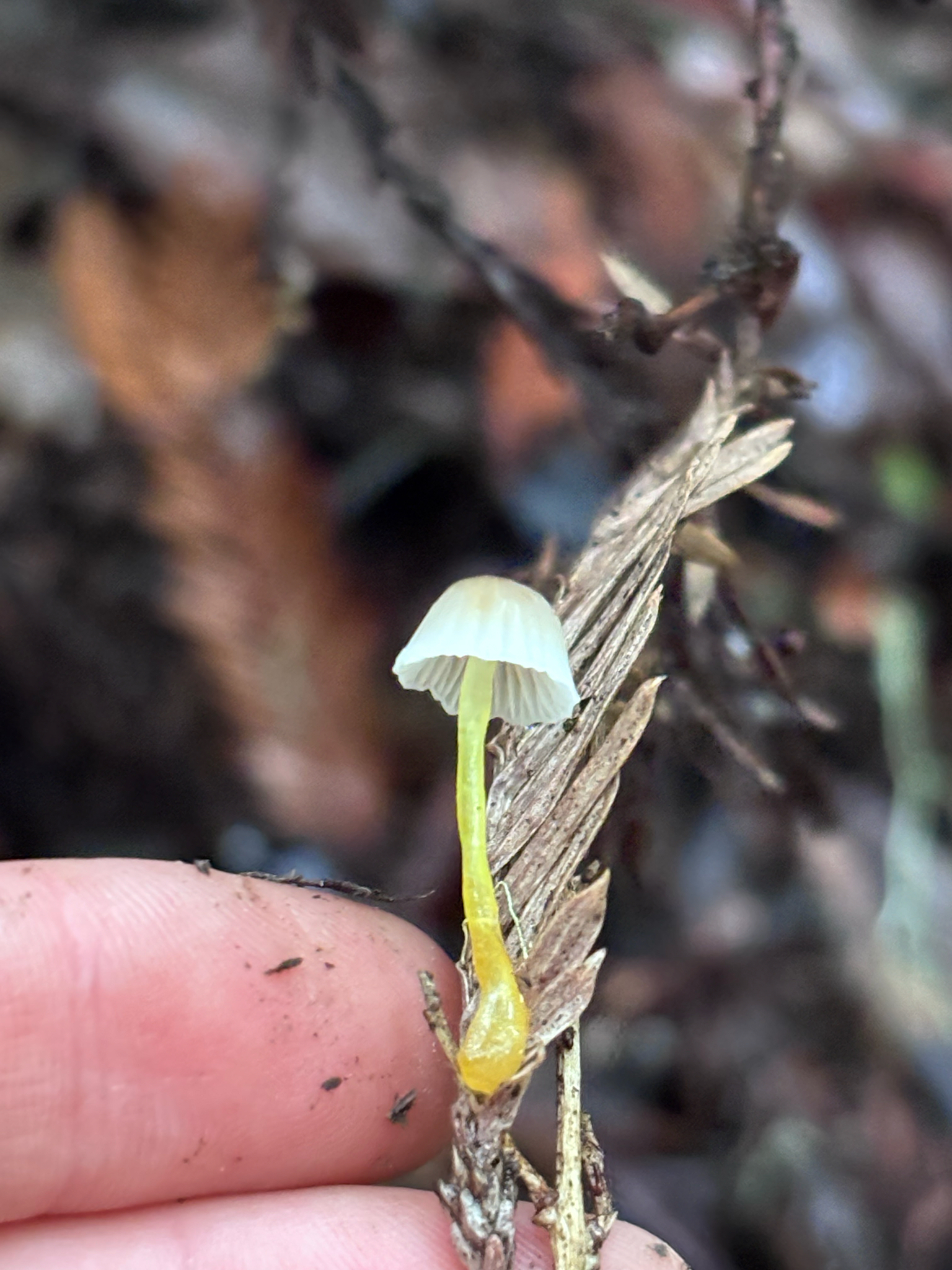 Hábitat: Saprófita en hojarasca, acículas, musgo y restos leñosos finos en bosques húmedos; frecuente en coníferas y mixtos, a menudo en zonas umbrías con alta humedad.