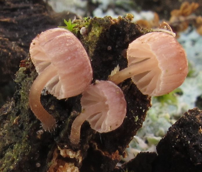 Hábitat: Saprófita sobre madera muerta de frondosas, en ramas y troncos muy degradados, a menudo con musgo, en bosques húmedos y sombríos. Puede aparecer en hayedos, robledales y mixtos.