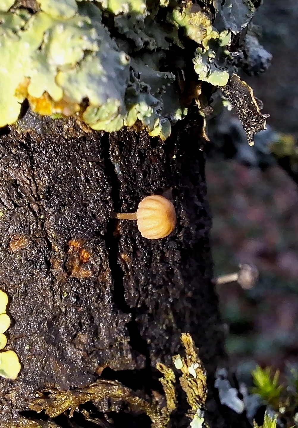 Revisa troncos y ramas en descomposición tras lluvias. Busca pequeños sombreros color miel, a veces con margen estriado por transparencia. Al ser diminuta, una linterna y una lupa ayudan. Fotografiar el sustrato es clave para documentar.