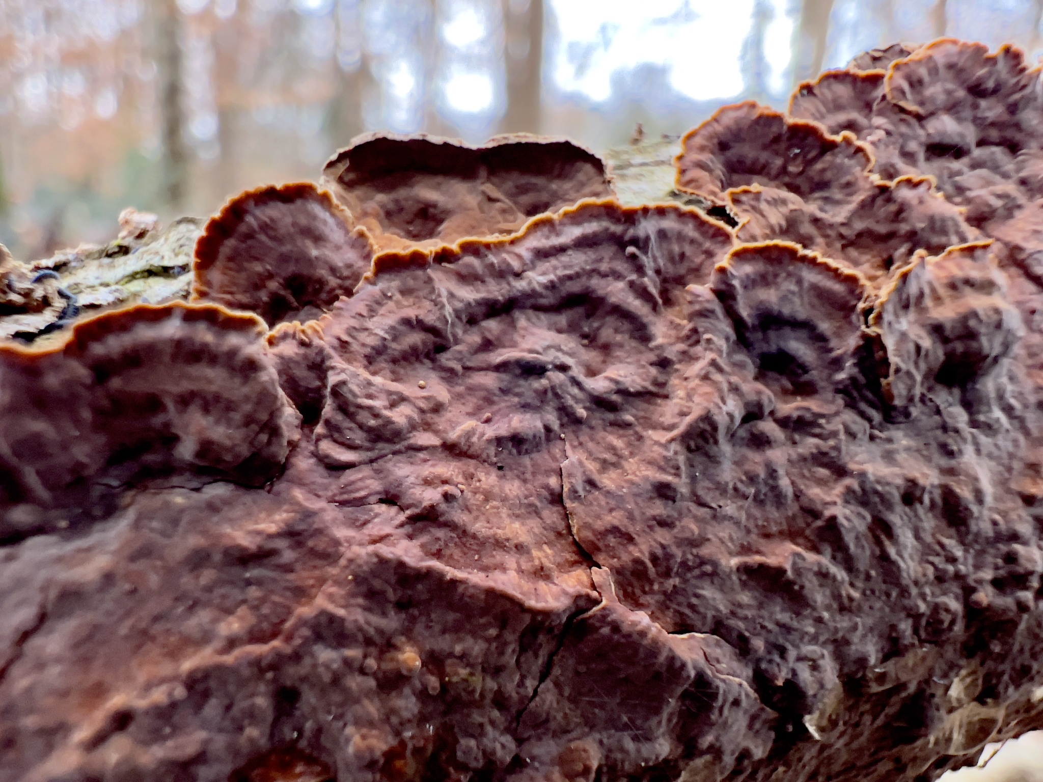 Punctularia strigosozonata, costra zonada