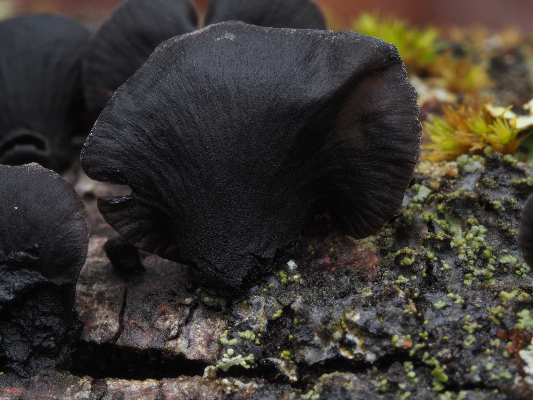 Hábitat: Lignícola sobre madera muerta en descomposición, en ramas y troncos caídos en zonas sombrías y húmedas. Suele aparecer en la cara inferior de la madera, donde se conserva la humedad.