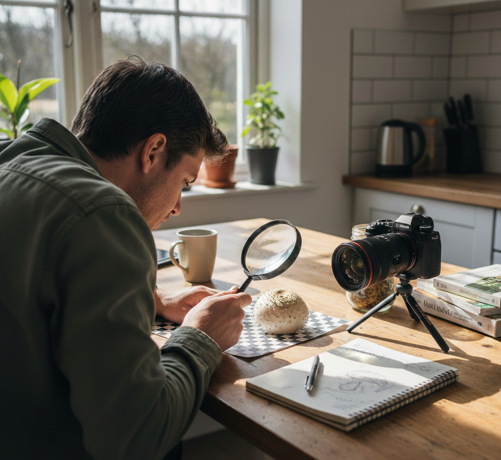 En casa no se trata de “adivinar”, sino de observar y registrar. Busca un espacio con buena iluminación (mejor si es luz natural o una lámpara directa), papel absorbente y una superficie fácil de limpiar. Cuanto más ordenado sea el proceso, más fácil será comparar con una ficha y detectar incoherencias.