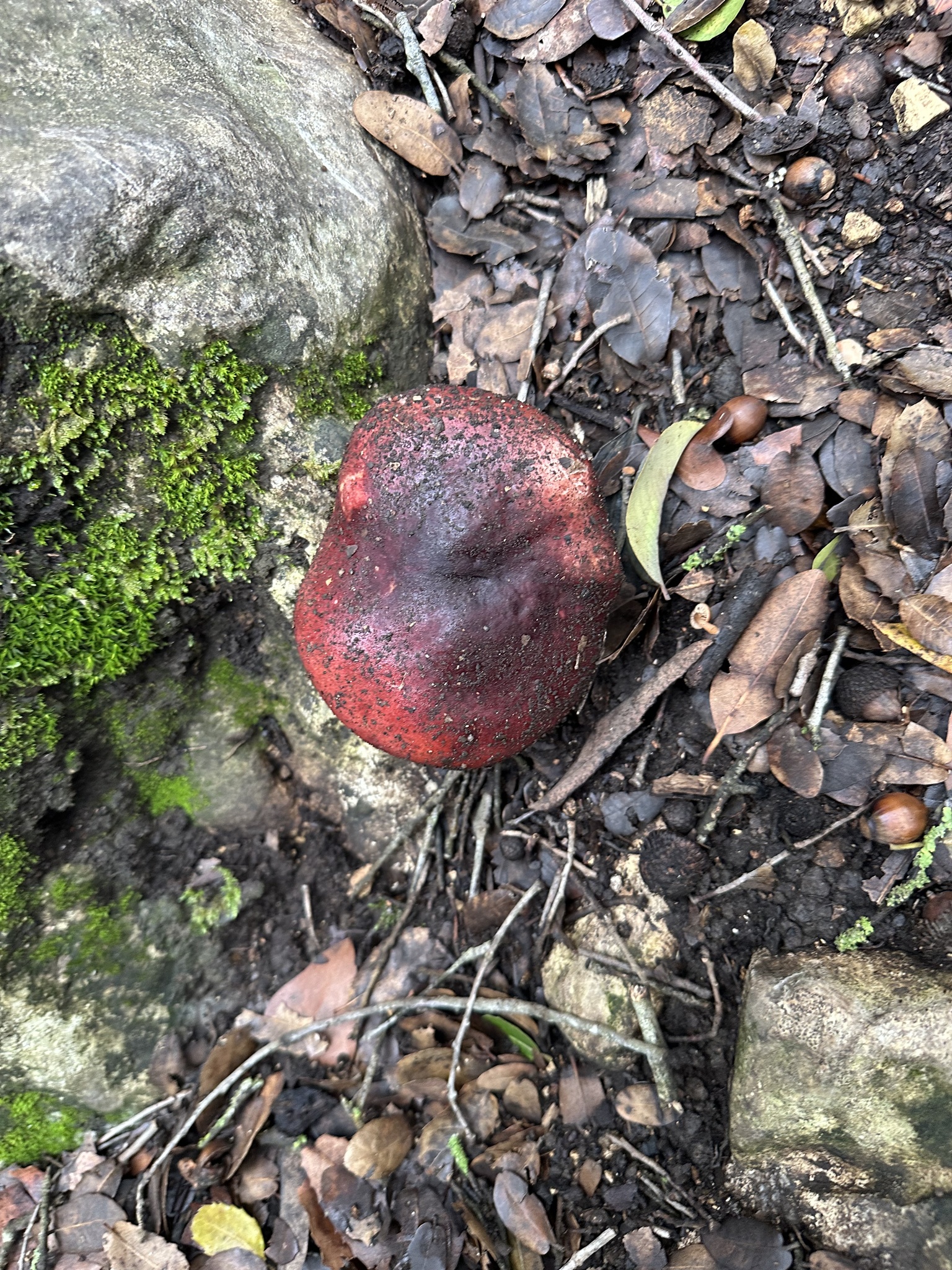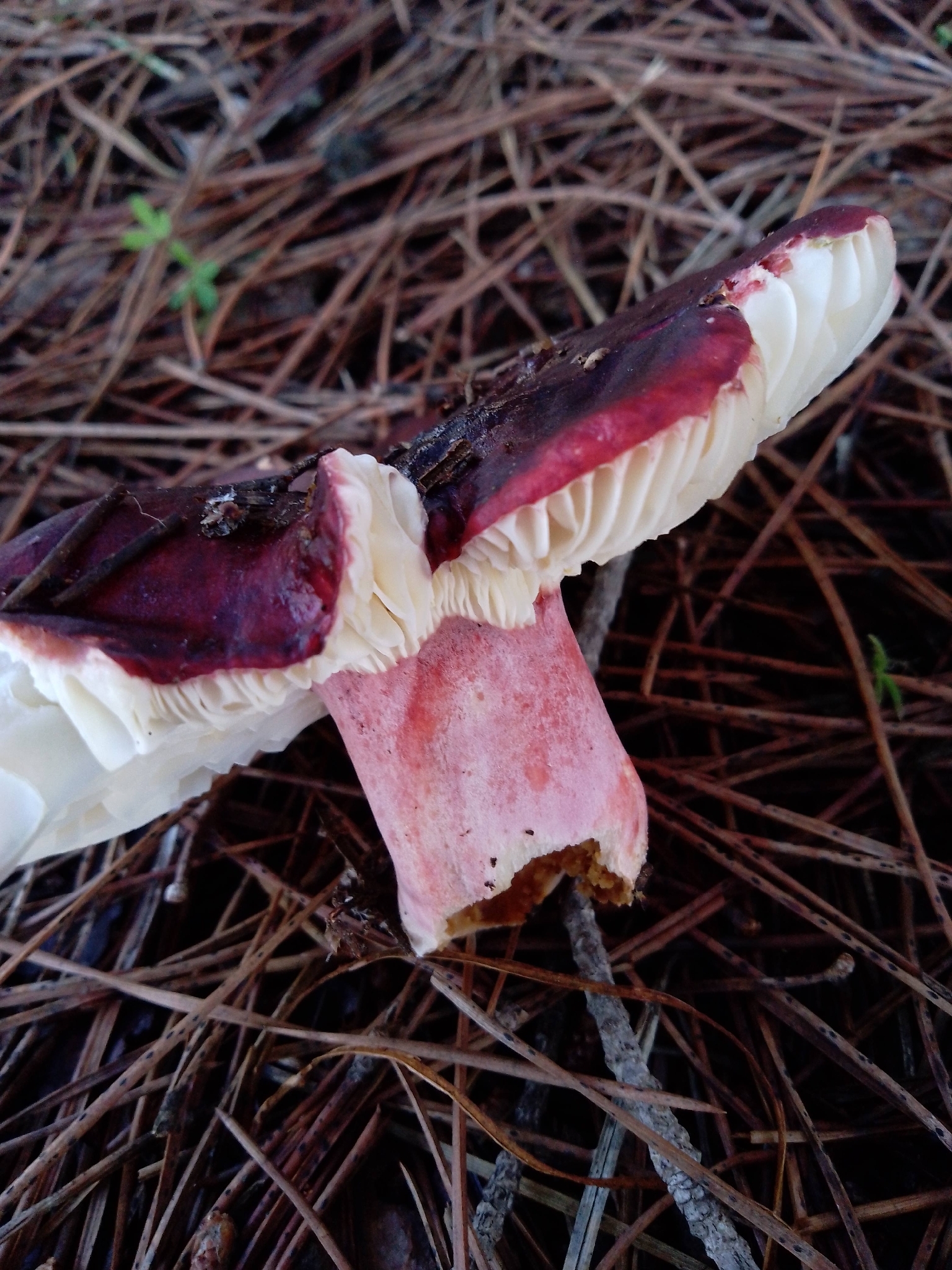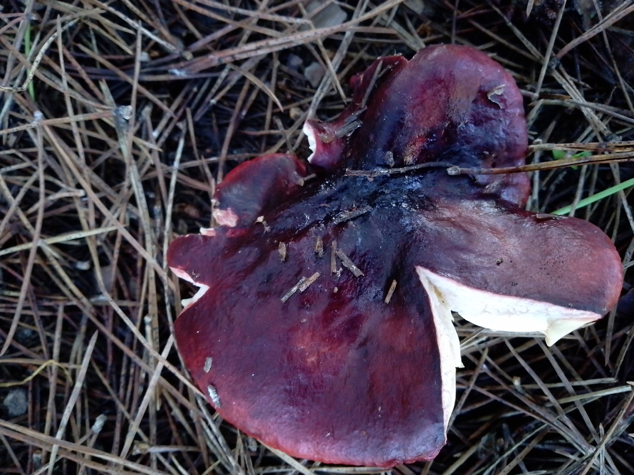 Busca rúsulas de sombrero violáceo en el suelo del pinar. Confirma el género por la carne quebradiza y láminas frágiles. El sabor suele ser muy acre, pero si se prueba para identificación debe hacerse solo con la punta de la lengua y escupiendo, nunca tragando.