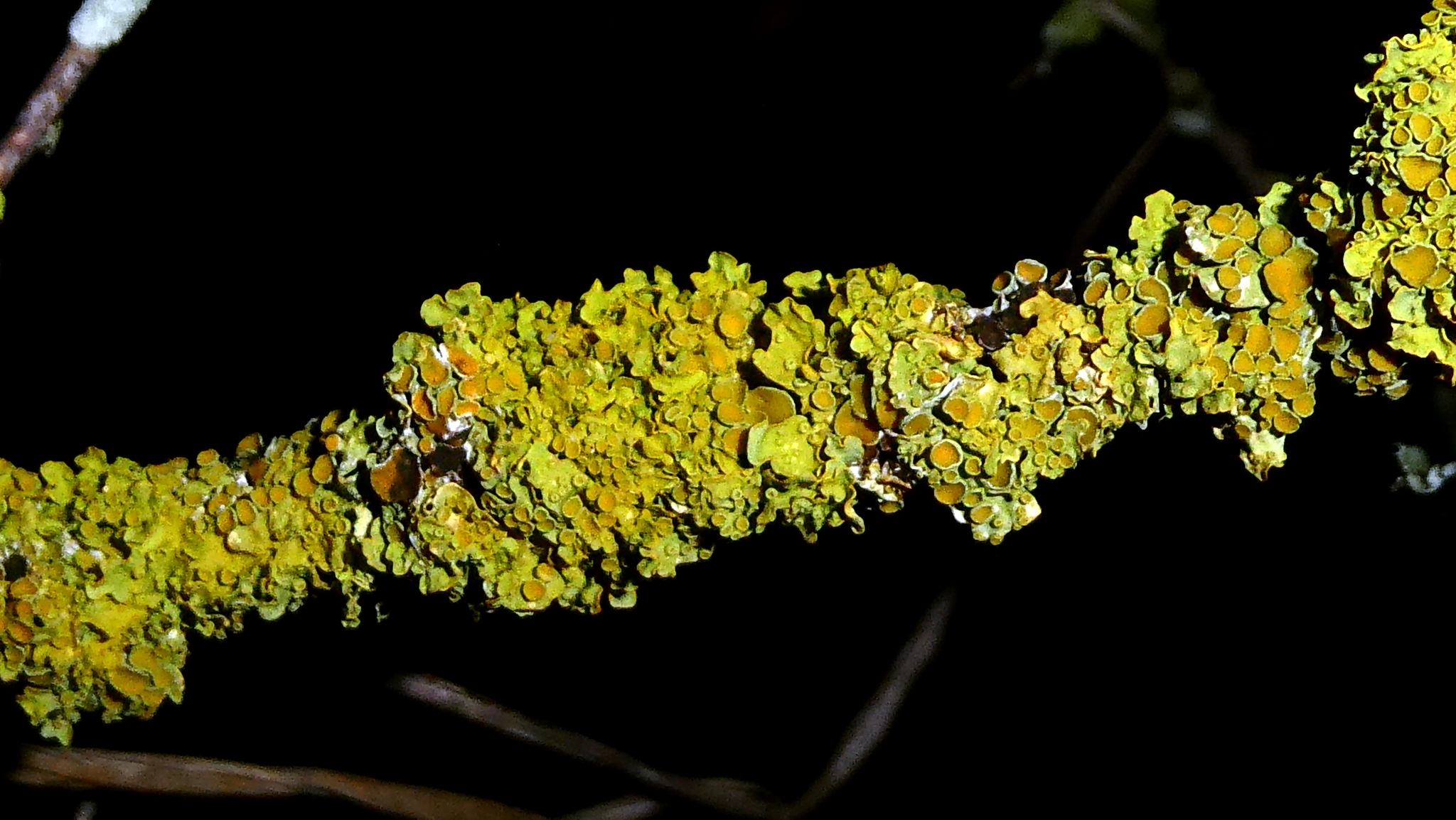 Xanthoria parietina, liquen amarillo de los muros y cortezas
